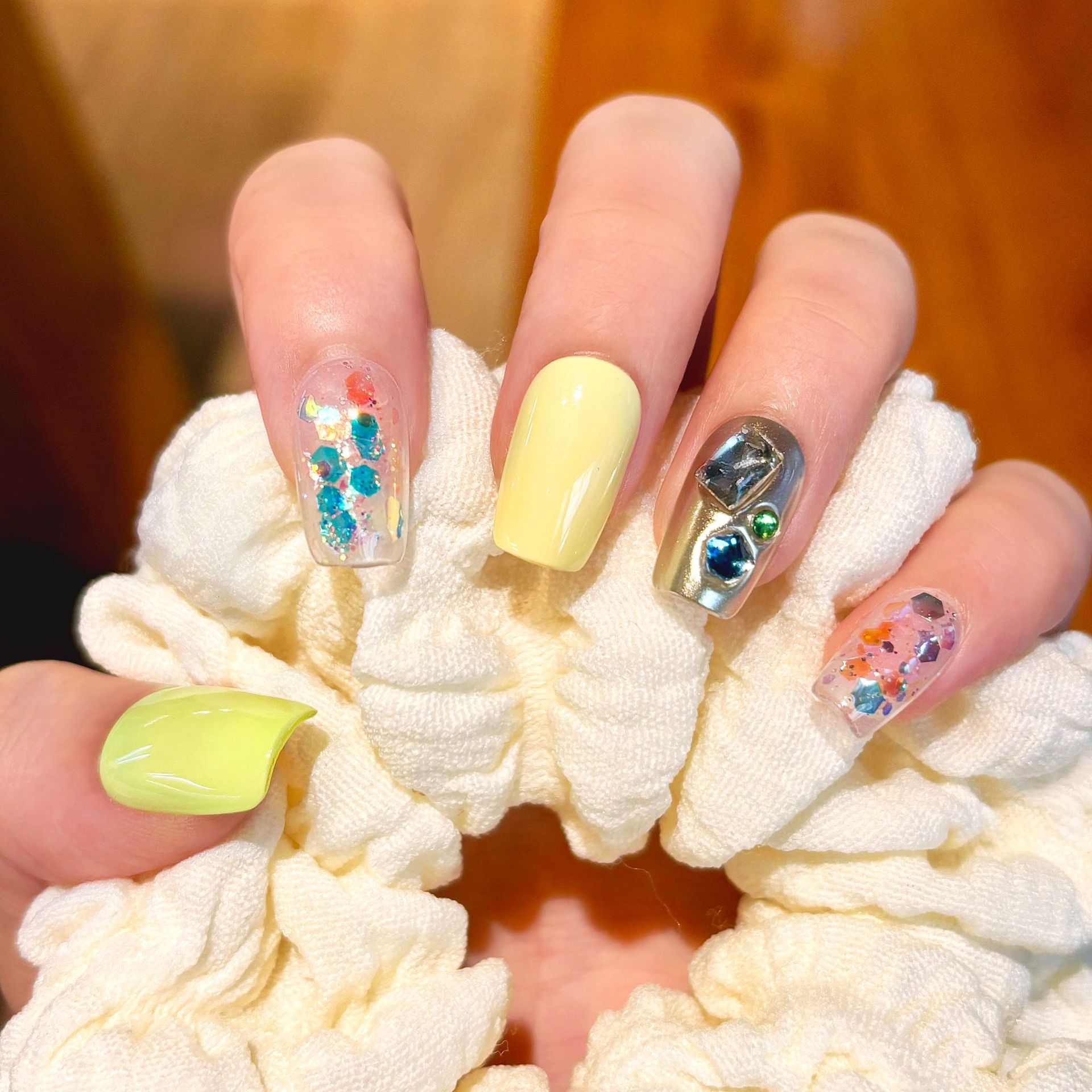 夏季多巴胺跳色爆闪手工穿戴甲ins风高级感美甲甲片工厂批发撞色