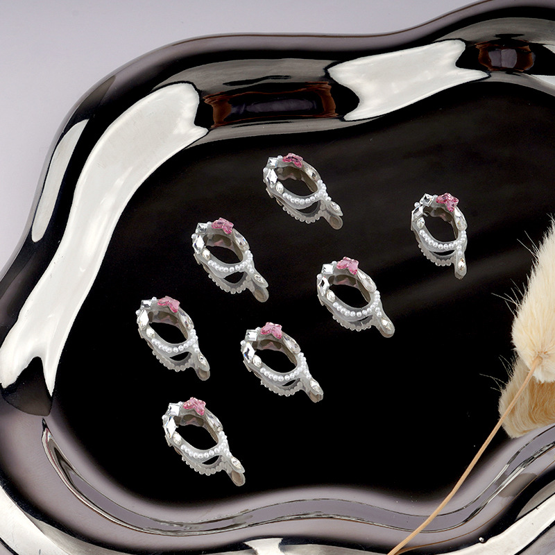 连体美甲排钻珍珠钻石一体堆钻美甲店线下批发一粘即用蝴蝶结