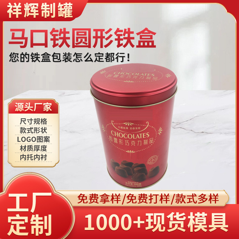 批发定 制圆形铁罐食品级证防潮马口铁巧克力异形盒加工订 制