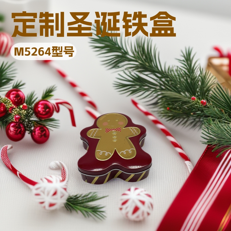 新款圣诞铁盒姜饼人铁罐定制 糖果巧克力包装盒曲奇饼干铁盒批发