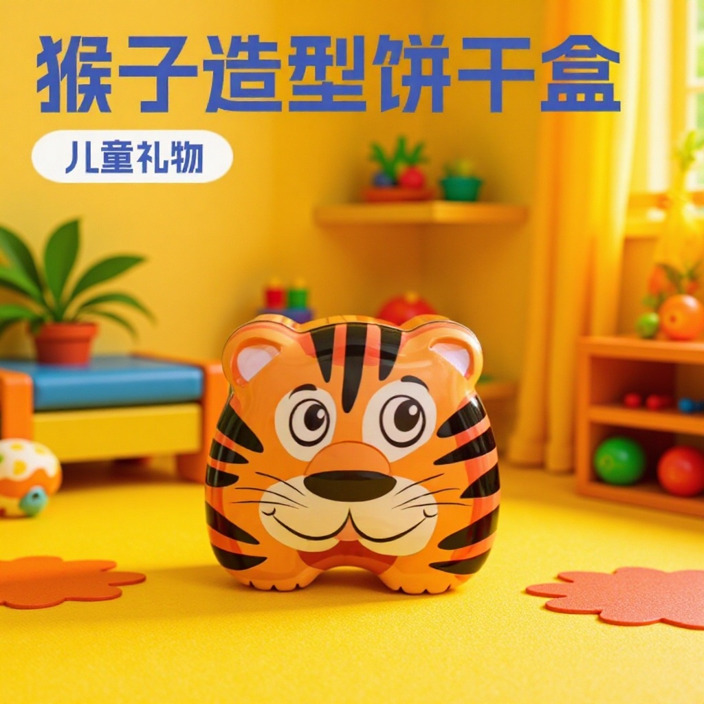 猴子造型铁盒 马口铁异形立体卡通饼干糖果盒 儿童生日礼物收纳