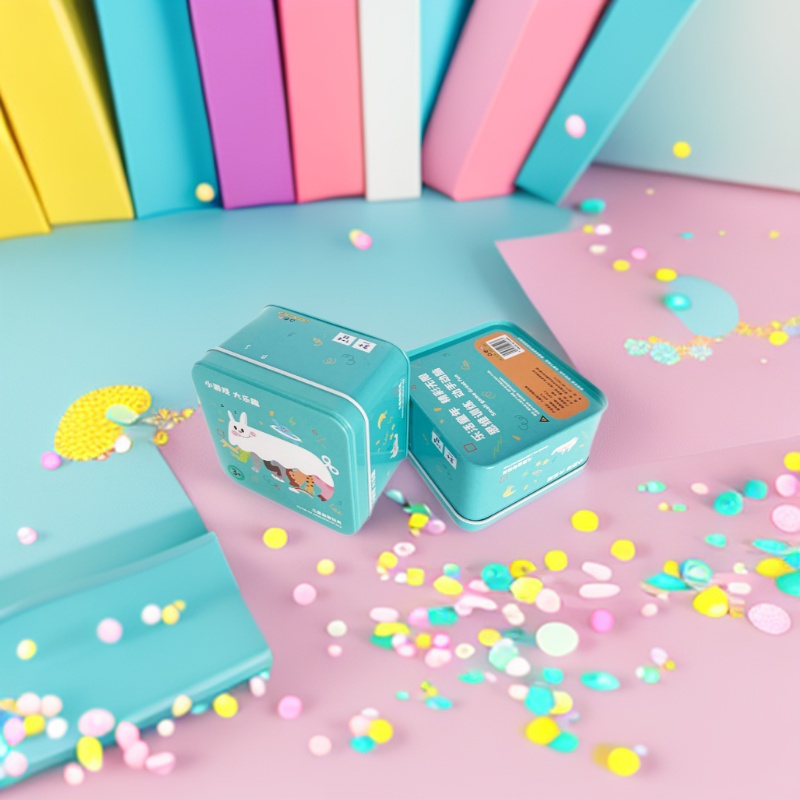 新品推荐两片拉伸铁盒 方形儿童磁力金属包装盒定制 翻盖磁力块包