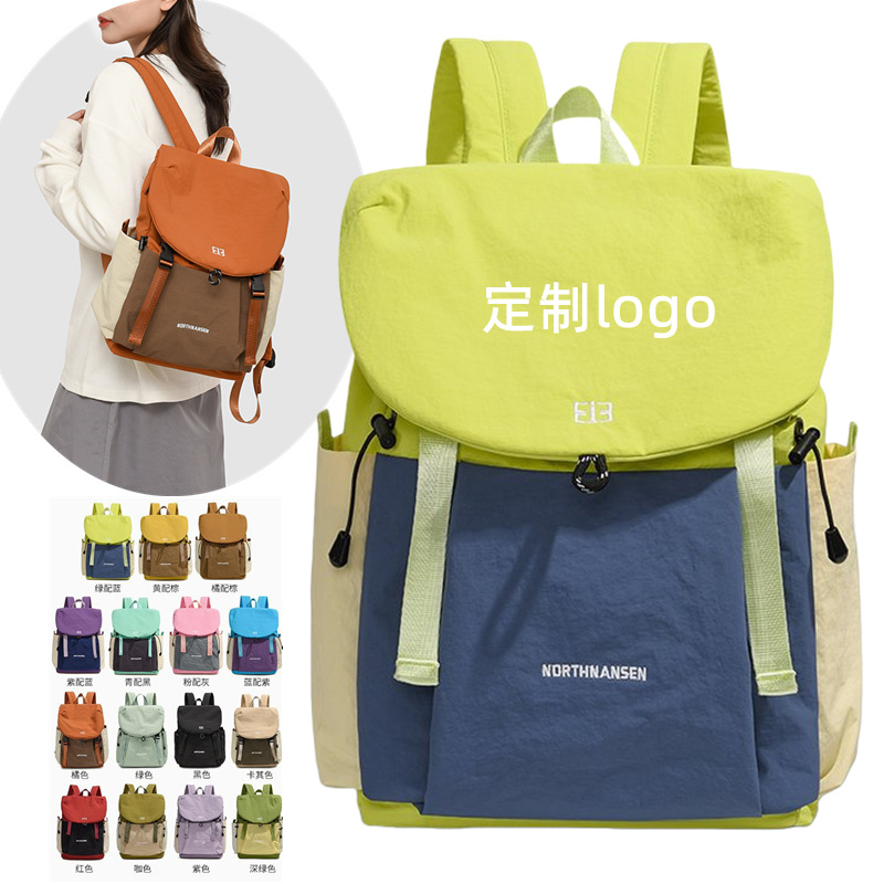 轻便双肩包男女大容量撞色休闲防泼水背包印制logo中大学生书包女