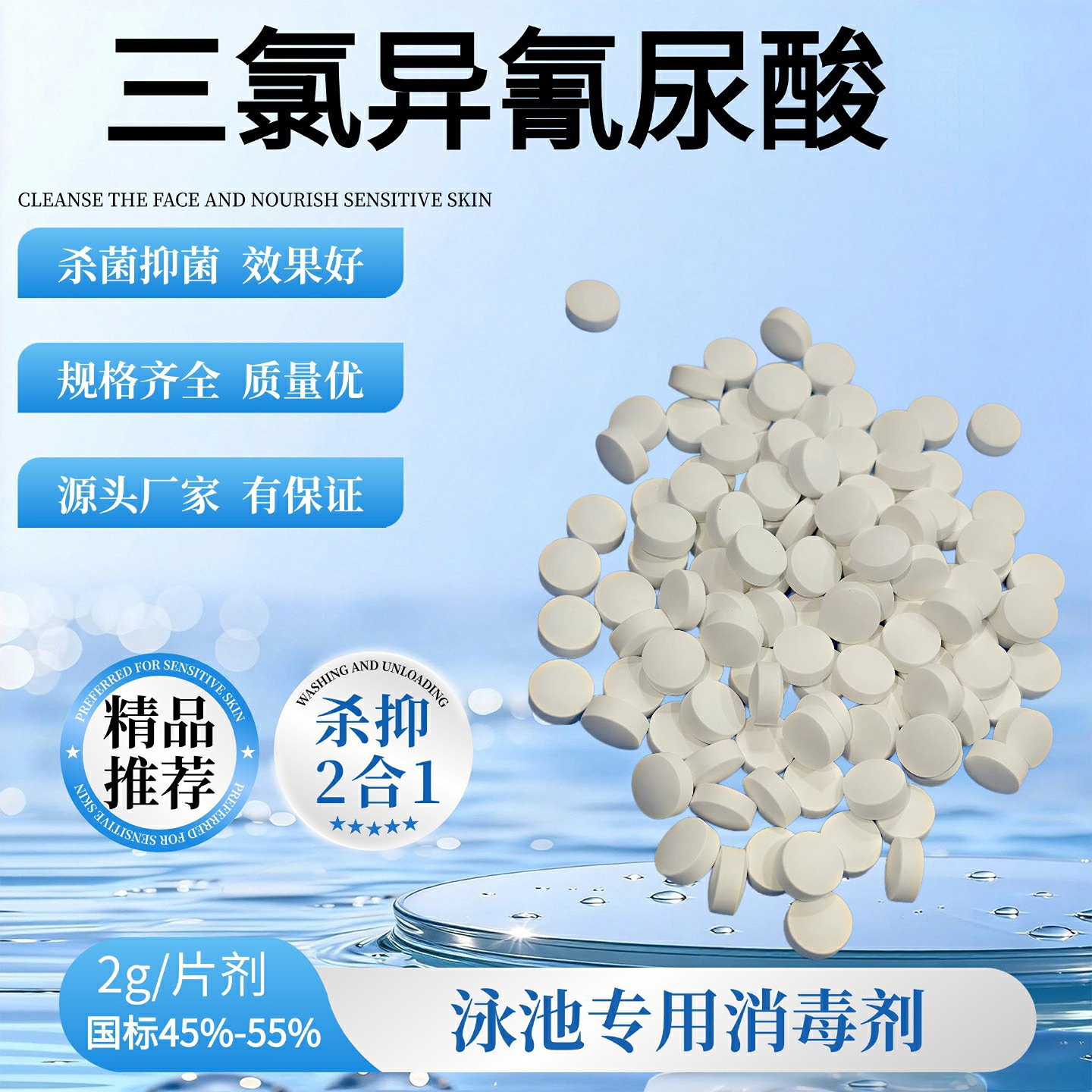 水处理消毒剂2g含量50KG泡腾片公共消毒用三氯异氰尿酸泳池消毒剂