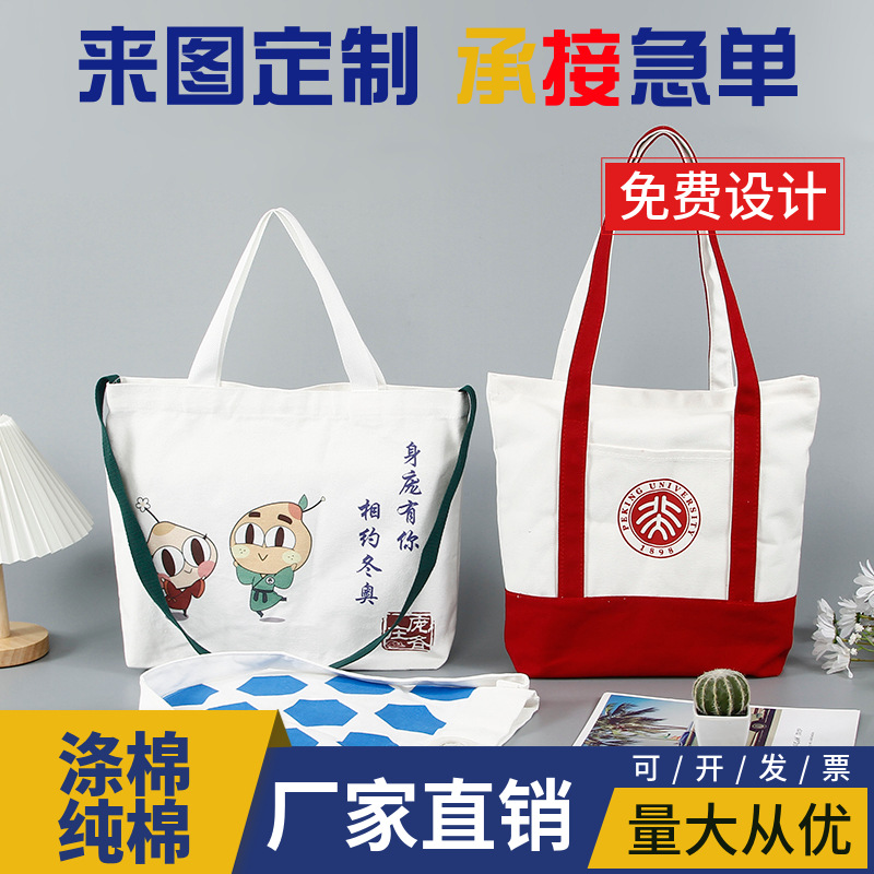 现货帆布包大容量学生通勤拉链手提帆布袋定 制创意购物手提袋