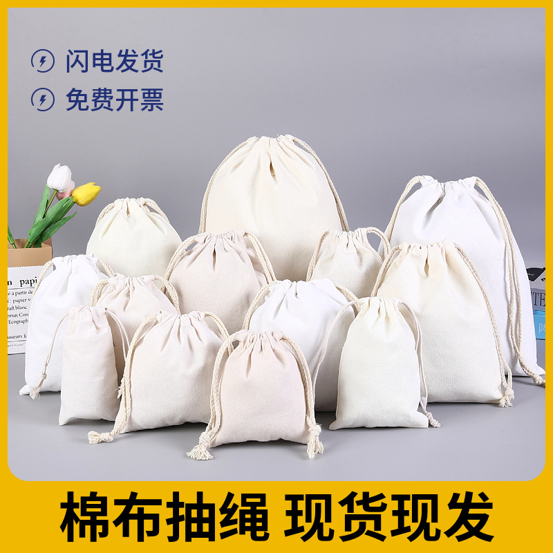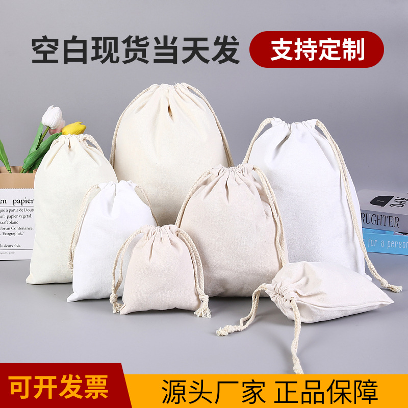 现货空白手提帆布袋带绳全棉手提棉布袋数码印刷logo帆布包购物袋