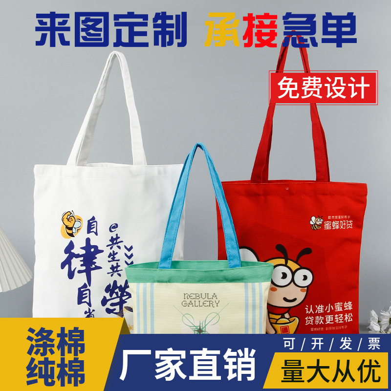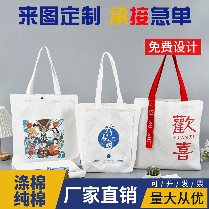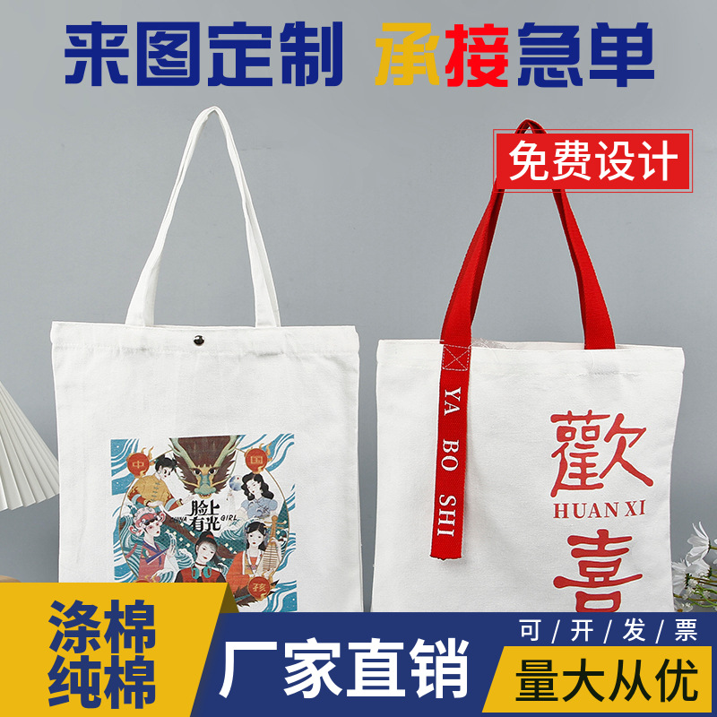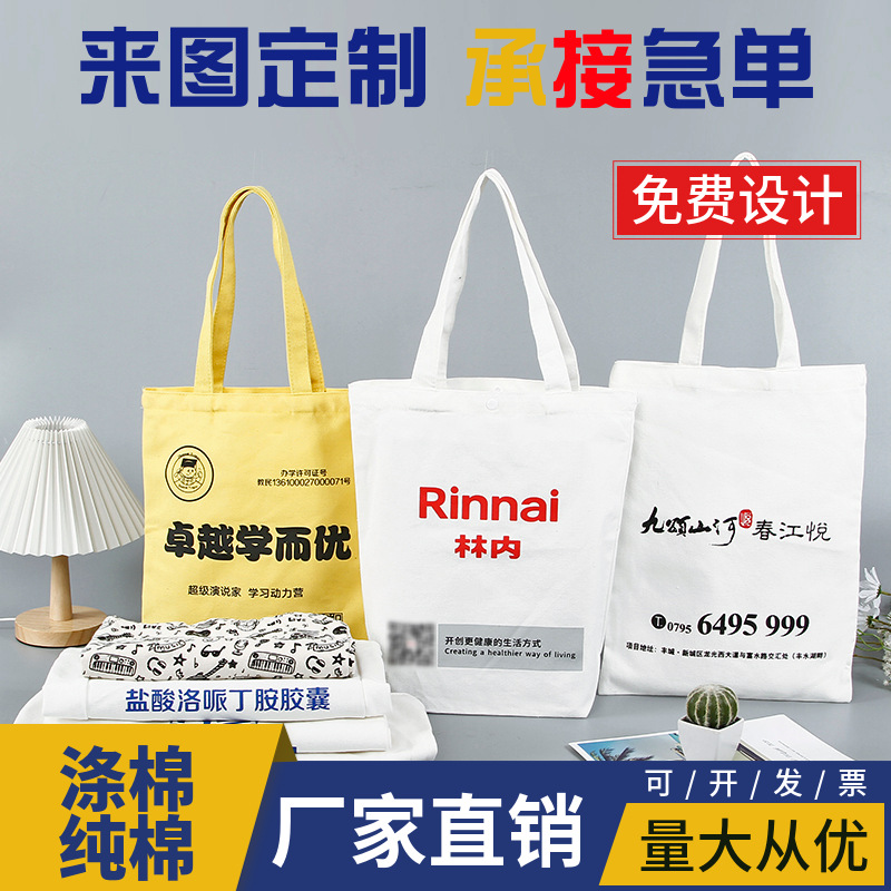 新款品质跨境电商空白可丝印logo商标设计品牌广告宣传活动帆布袋