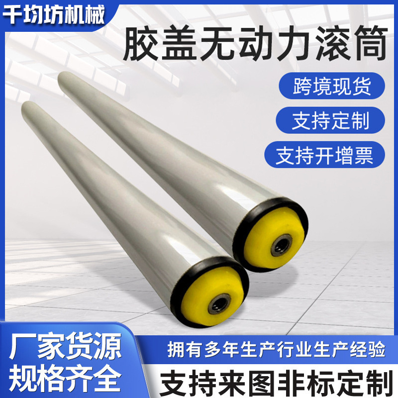 厂家供应无动力胶盖滚筒流水线传送带滚轴镀锌不锈钢托辊辊筒可定