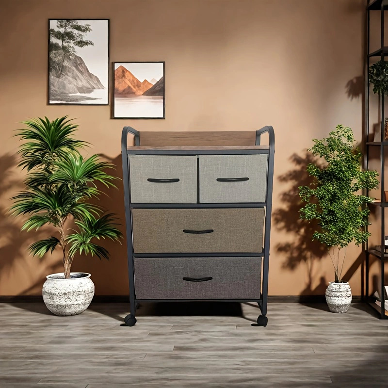 多功能万向轮储物柜客厅收纳柜布艺抽屉式零食置物架可移动五斗柜