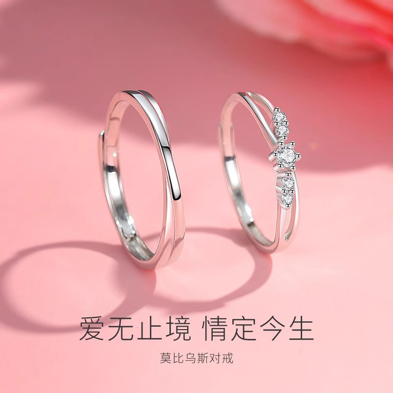 莫比乌斯环情侣对戒925纯银戒指男女一对小众设计生日礼物送女友