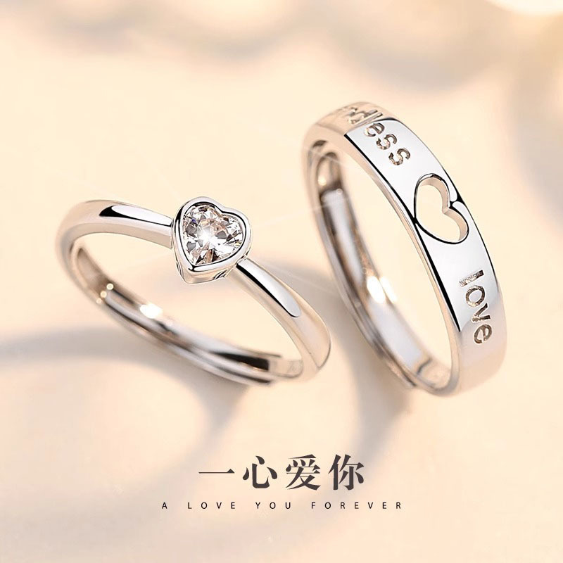 一心爱你情侣戒指纯银轻奢小众设计感对戒情人节生日礼物送男女友
