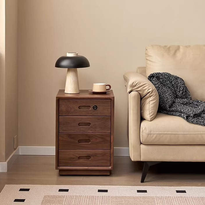 黑胡桃木四斗柜办公室桌下文件带锁柜打印机柜柜实木带轮子储物柜