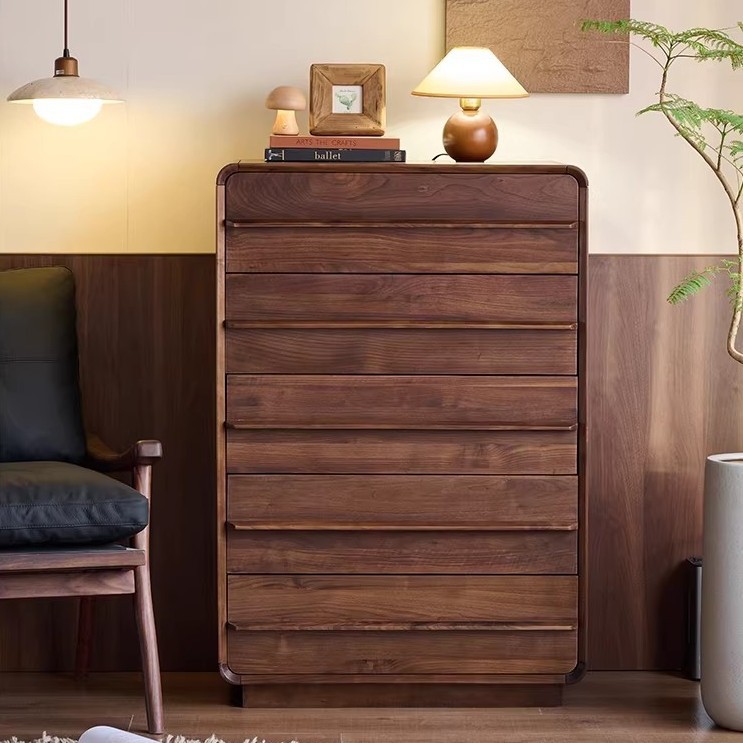 北美黑胡桃木实木斗柜卧室床尾储物柜客厅樱桃木原木边柜抽屉斗柜