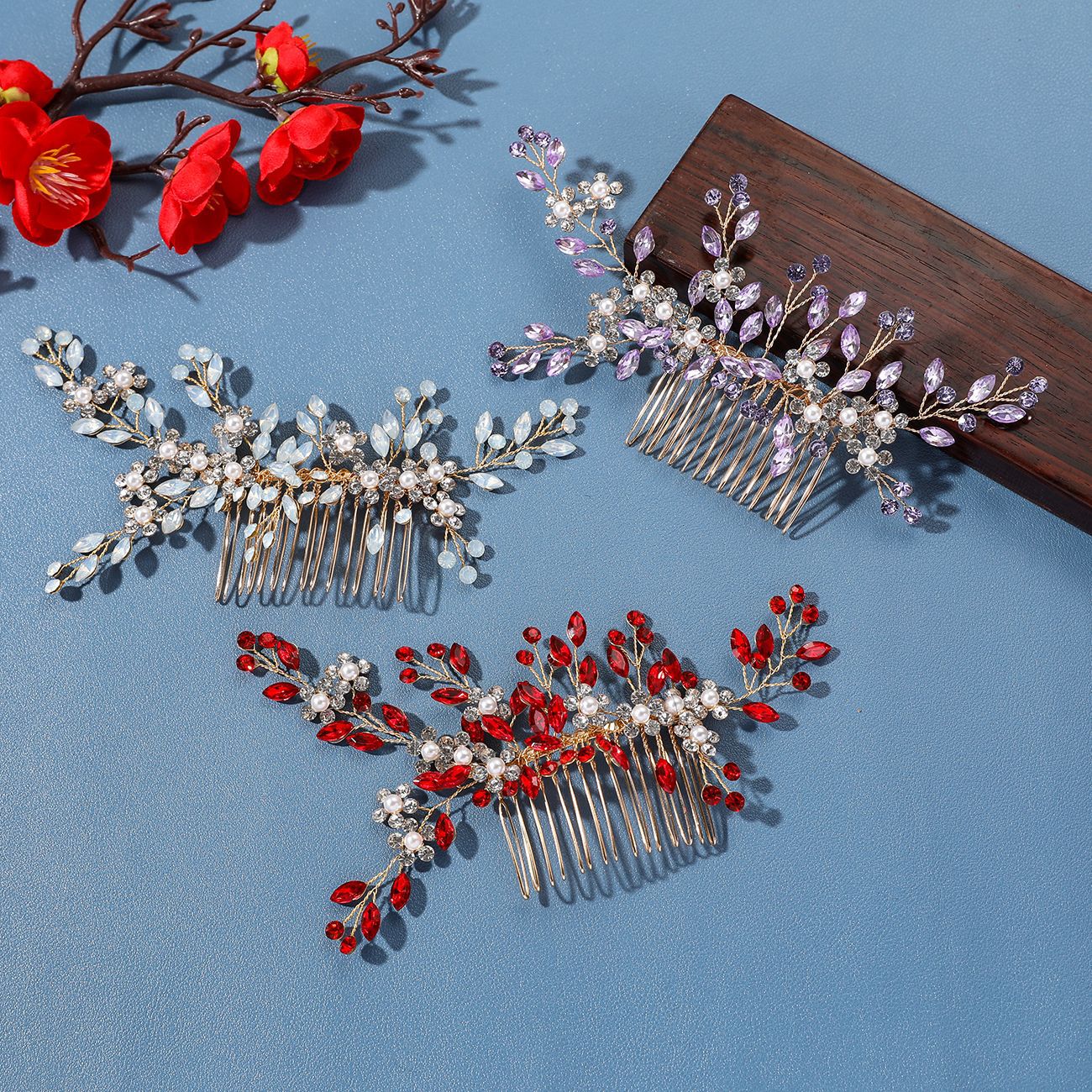 欧式新娘热销插梳头饰手工水钻花朵发梳配饰婚纱礼服盘发侧边饰品