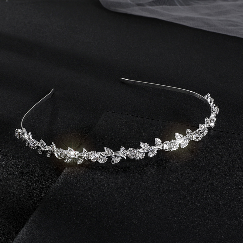 亚马逊新娘婚礼头巾水晶银叶子新娘发饰新娘和伴娘的水钻发带头饰