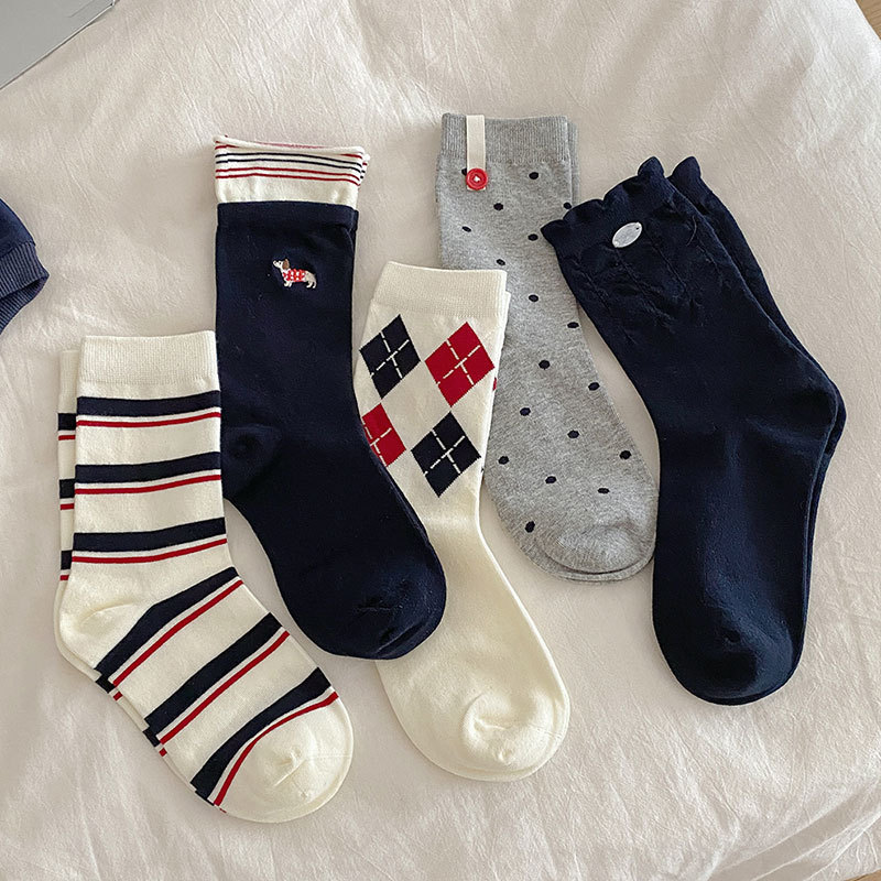 源头工厂双针点子纱棉袜女秋冬加厚彩色布标堆堆袜ins潮中筒袜