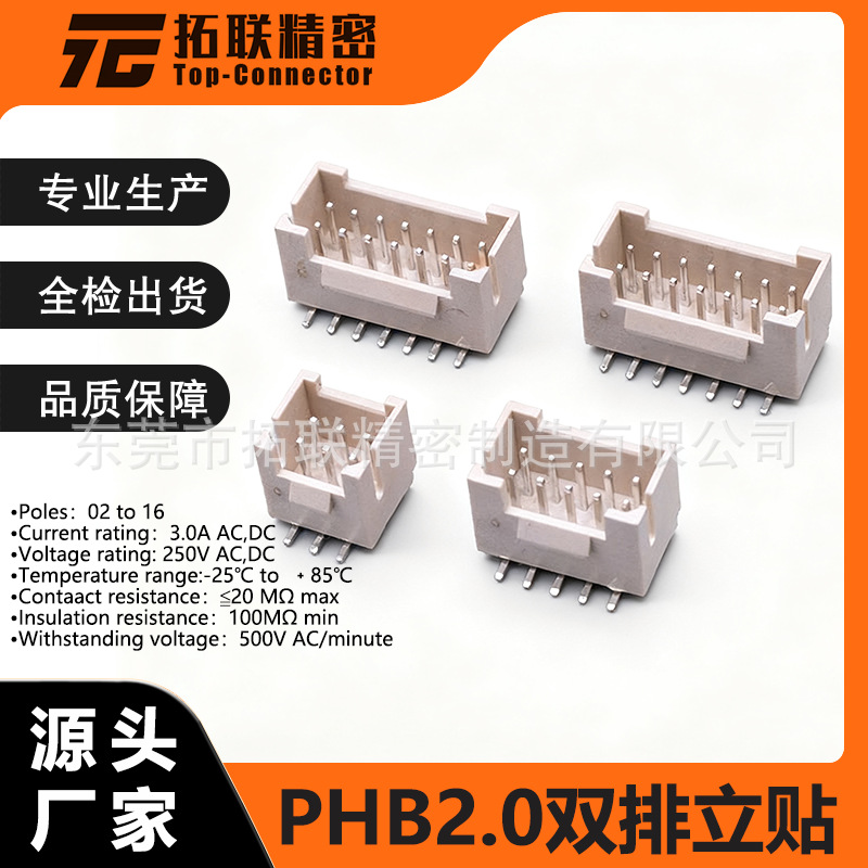 厂家直供PHB2.0间距立式贴片SMT连接器针座公母座端子编带盘装