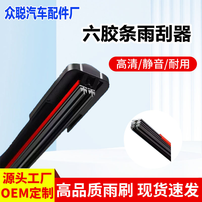 适用通用雨刮器U型六胶条雨刷片无骨雨刮雨刷源头工厂