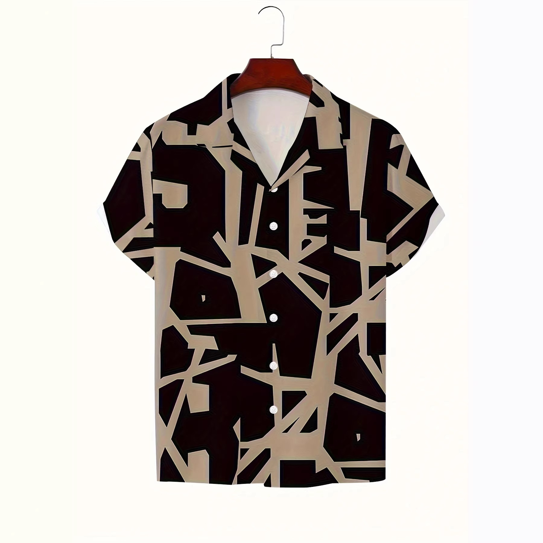 跨境男士3d数码印花翻领纽扣短袖衬衫男装沙滩度假男新款百搭