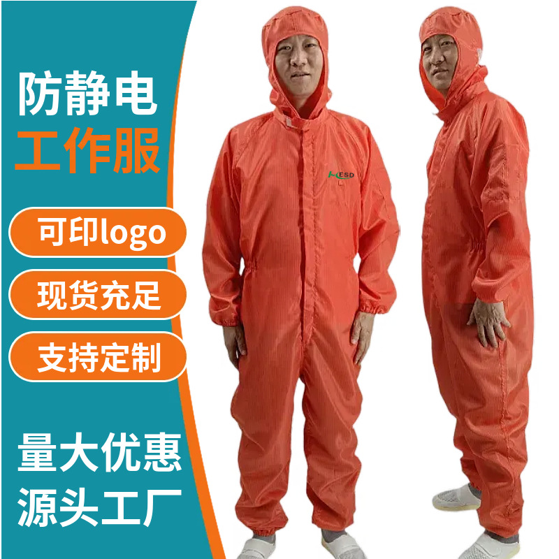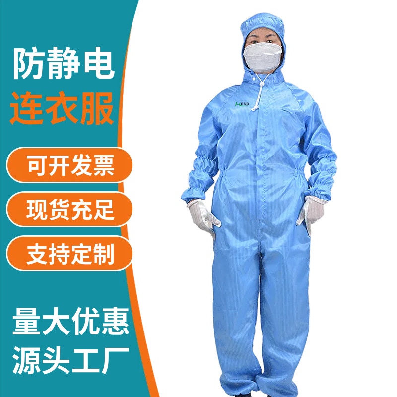 芯片厂魔术贴连帽连体服 防尘防静电服 三连体防静电工作服