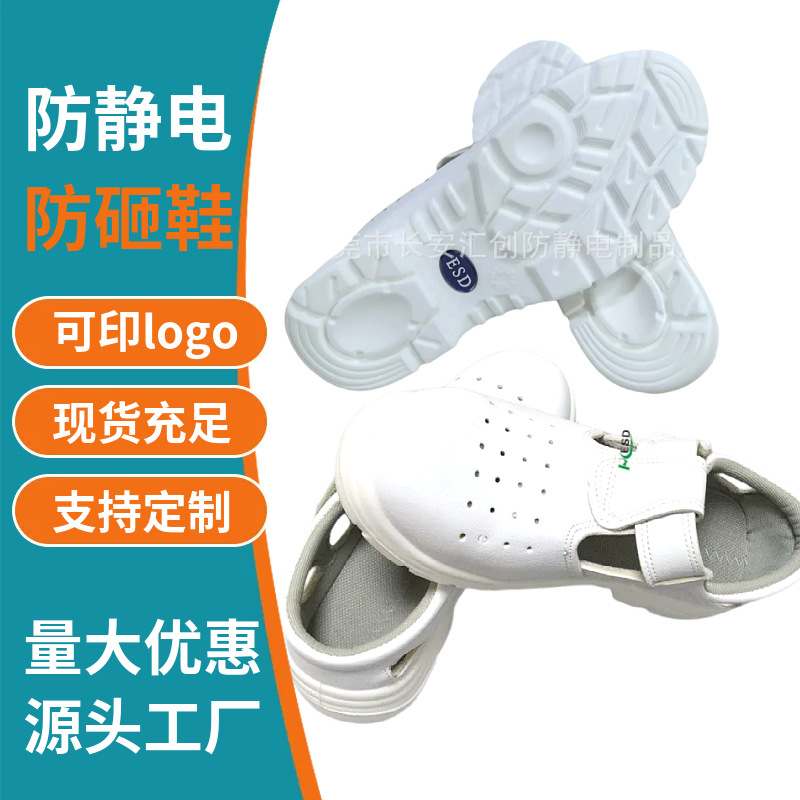 汇创定制电子厂魔术贴防静电工作鞋 食品厂制药厂防砸凉鞋