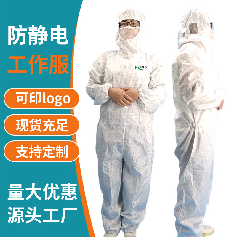 汇创定制连靴防静电洁净连体服 半导体车间抗静电连帽工作服