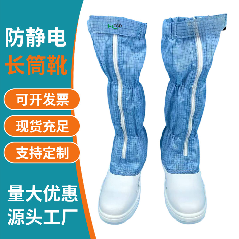 蓝白色硬底无尘长筒靴防静电硬底靴 防静电长筒靴鞋防尘高筒靴