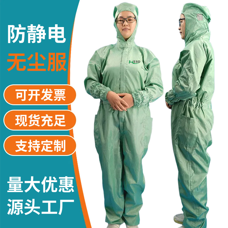 汇创厂家定制圆顶帽防静电连体服内配收纳袋摩擦电压小于100伏