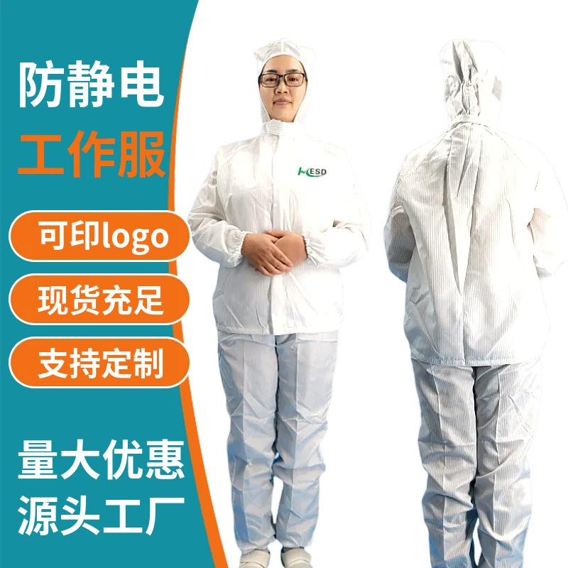 无尘工作服立领式分体服套装 防静电分体服 条纹连帽白色分体服