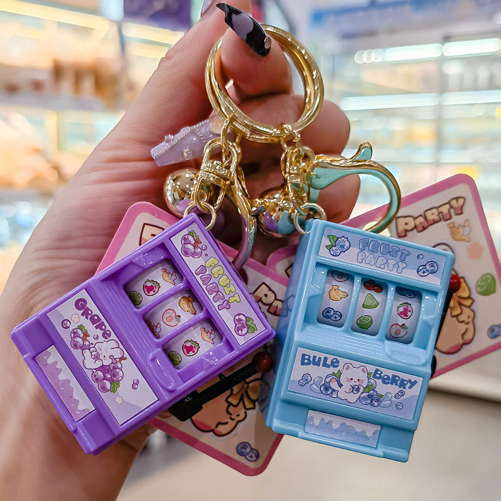 创意迷你水果派对小动物水果机拉霸摇奖机可爱钥匙扣仿真模型玩具