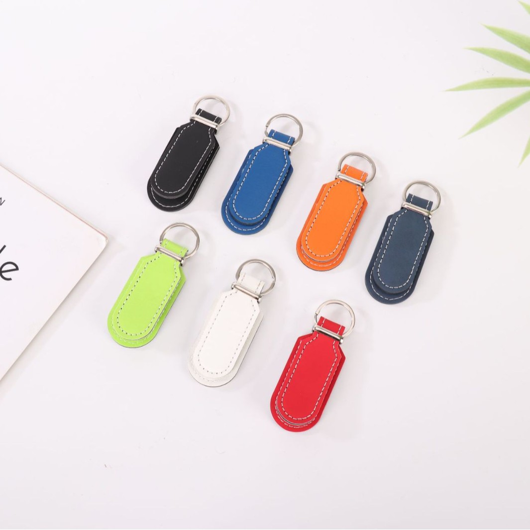 厂家供应亚马逊爆款热转印钥匙扣PU皮革男包女包复古椭圆形钥匙扣