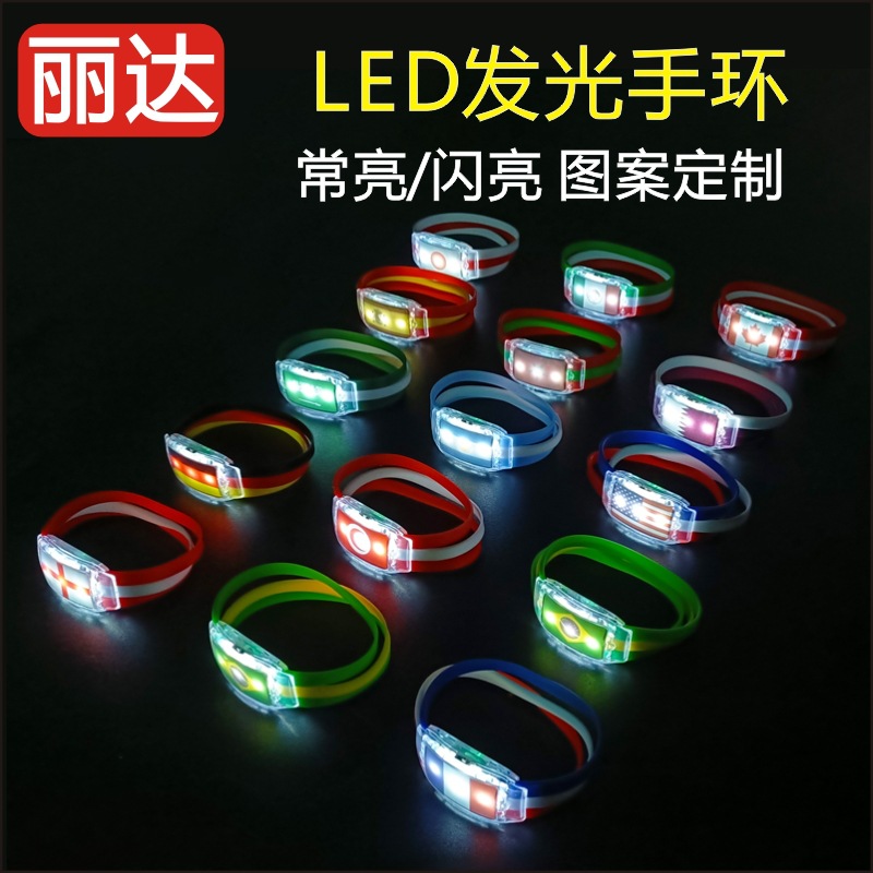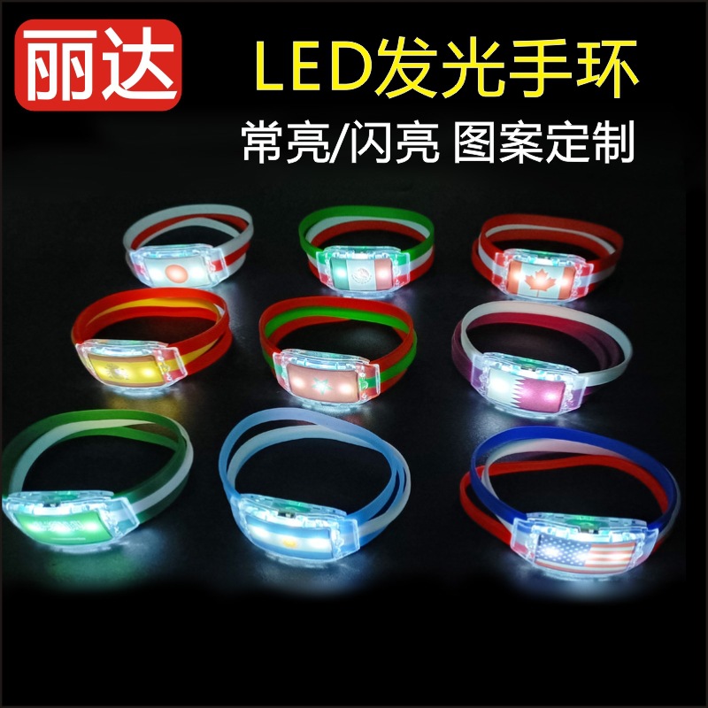 体育比赛LED硅胶发光应援手环 可定制LOGO国旗助威道具七彩夜光