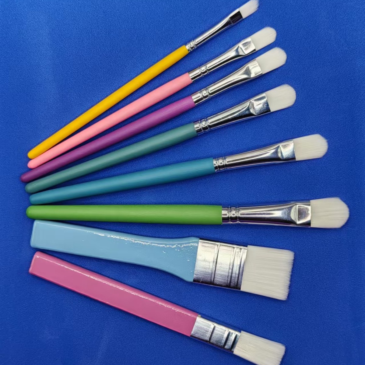 糖果色扁头油画笔塑料杆绘画圆头画笔成人儿童颜料笔油画彩绘涂鸦