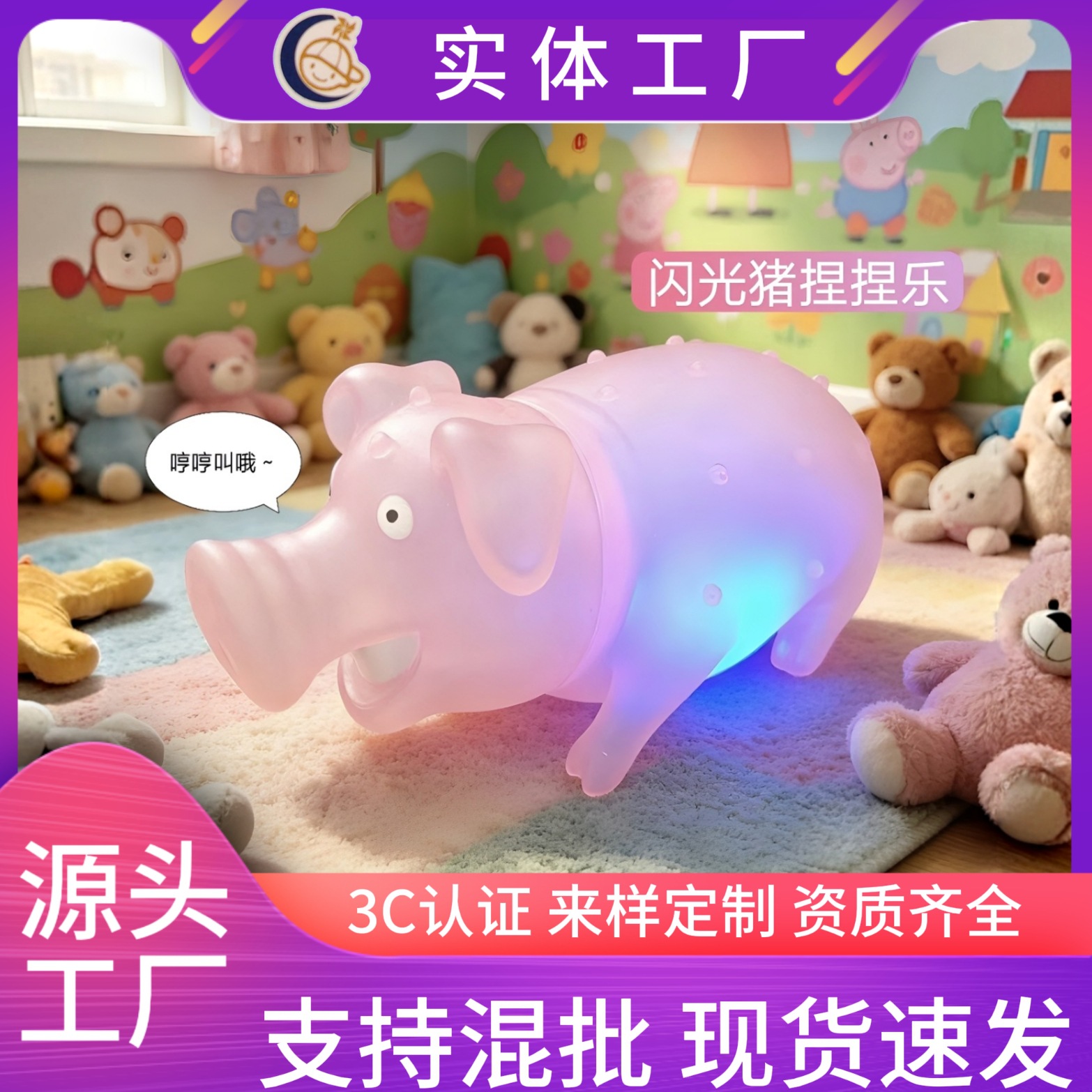 闪光猪软胶捏捏戏水广场夜市减压整蛊猪猪侠玩具夜市摆摊玩具批发