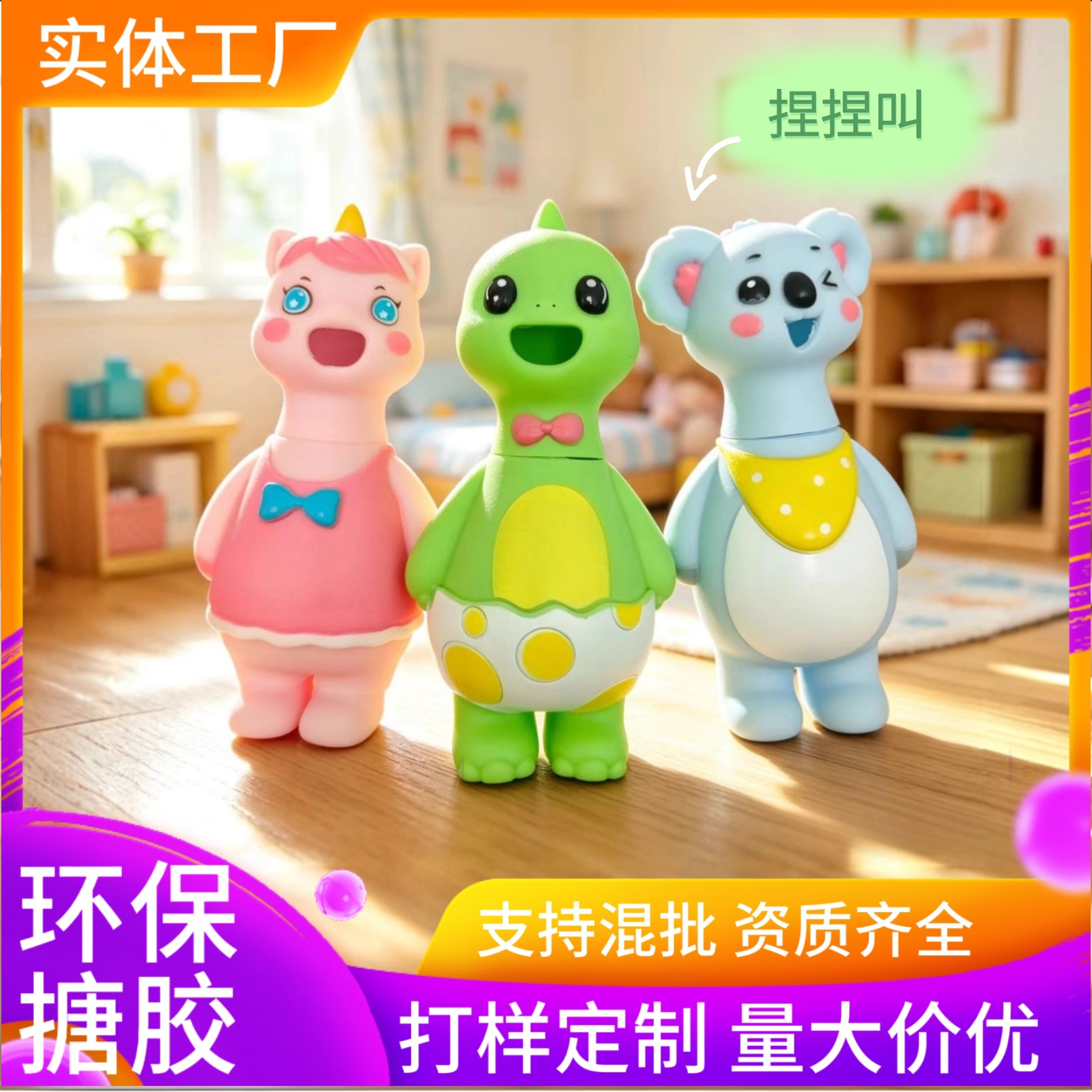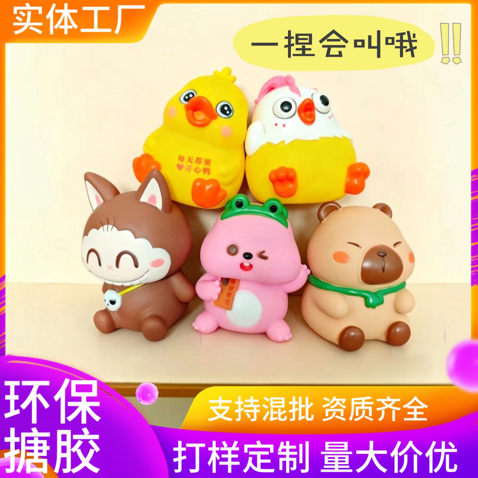 动物萌趣搪胶公仔捏捏叫慢回弹耐摔儿童益智玩具益智解压趣味夜市