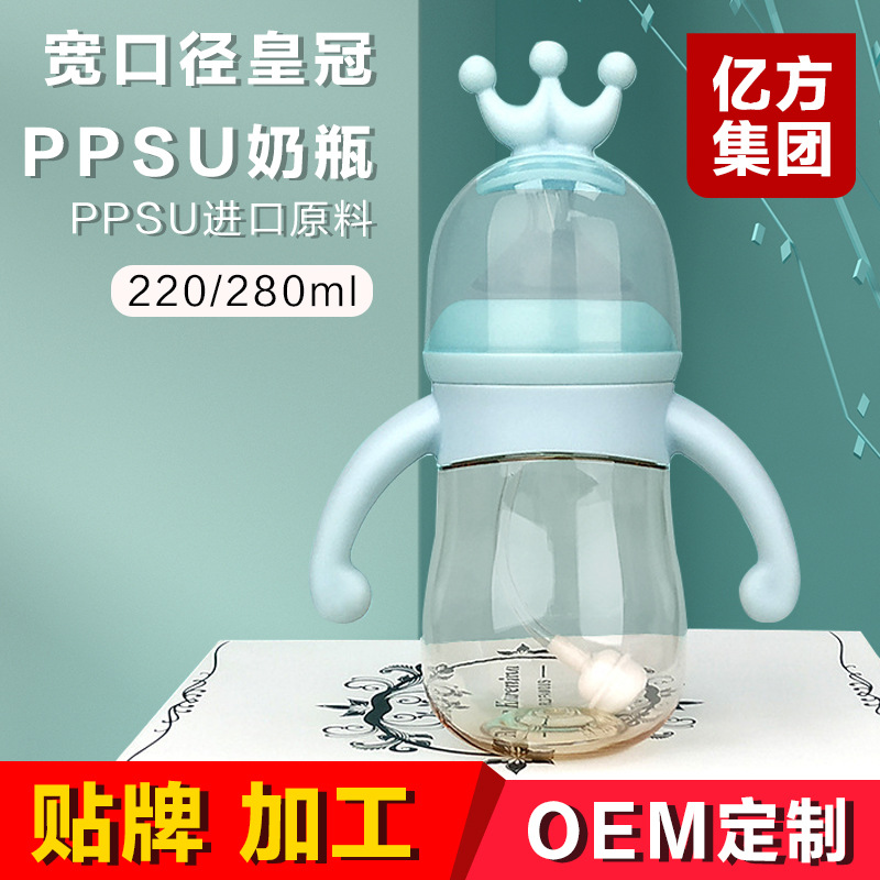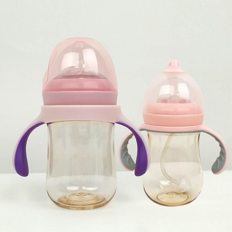 母婴用品加工厂水瓶带手柄弧形宽口加印logoPPSU奶瓶水杯宽口便携