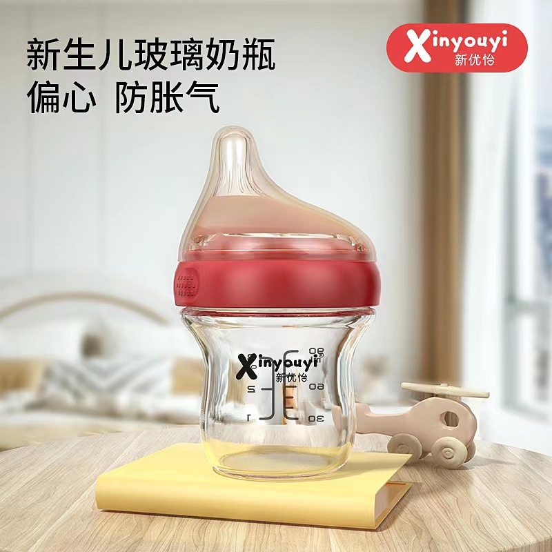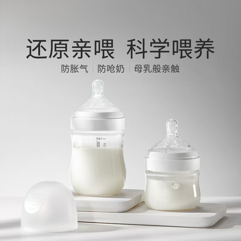 母婴用品双十一玻璃奶瓶奶嘴宽口径弧形设计防胀气新生儿水杯定制