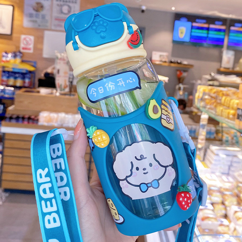 儿童水杯带吸管背带高颜值可爱男女学生户外便携可斜跨防摔耐高温
