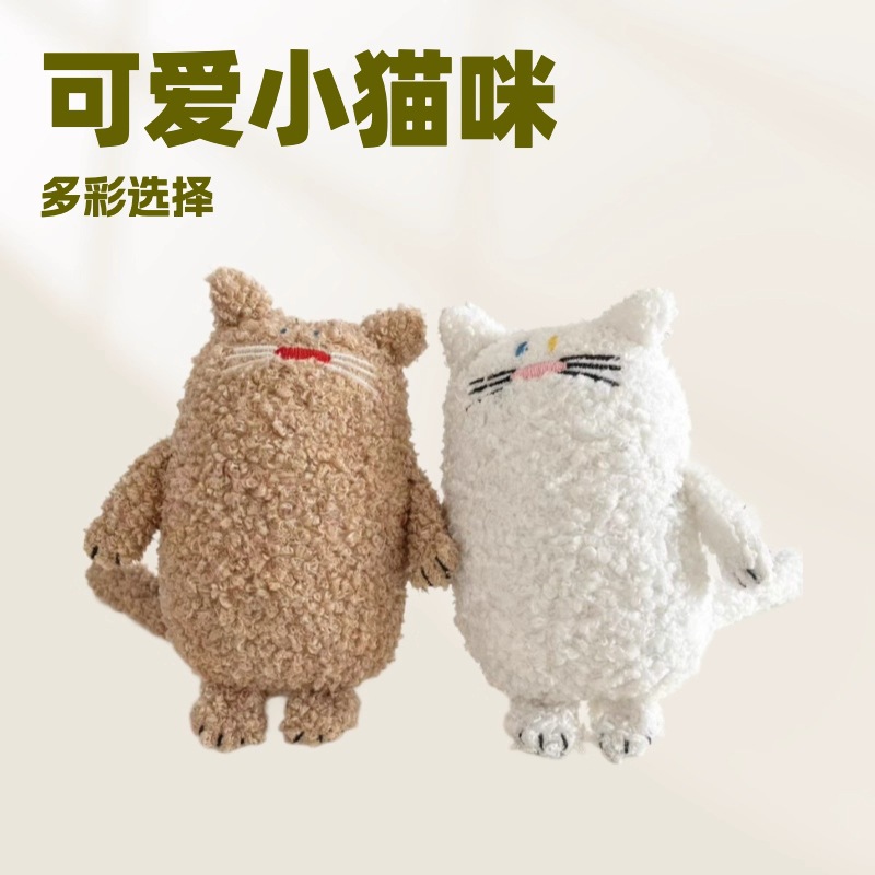 原创治愈系卷毛猫咪玩偶可爱有质感软乎乎的小猫毛绒玩具羔羊绒毛