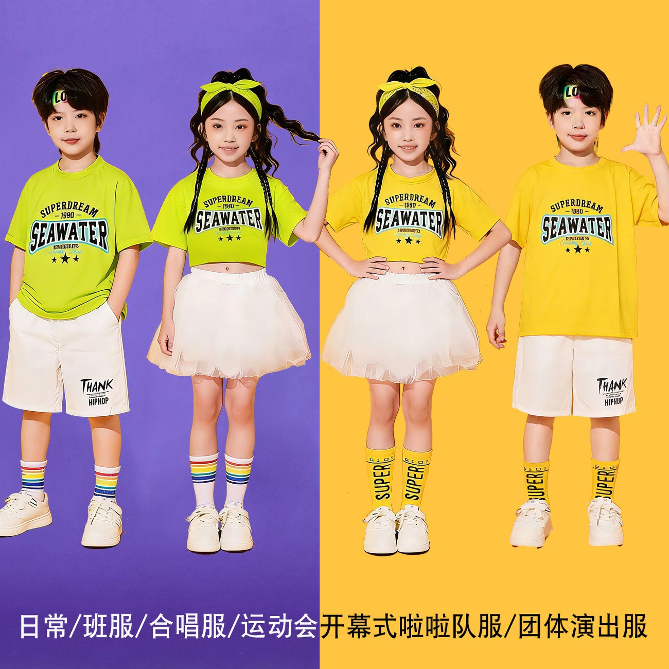 六一儿童啦啦队演出服小学生运动会班服校服幼儿园港风舞蹈表演服