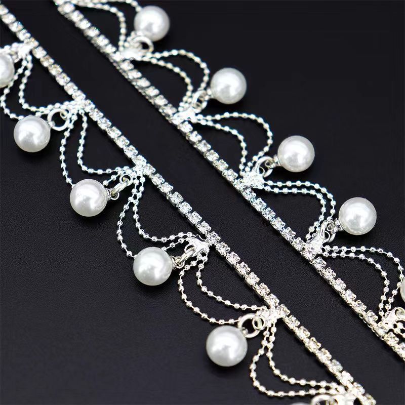花式珍珠水钻流苏链 diy手缝钻链包包腰部礼服肩带服装装饰配件