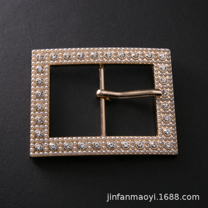 金属圆形皮带调节针扣镶钻珍珠服饰箱包扣日字扣腰带衣角装饰扣