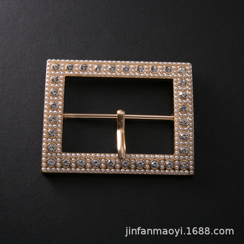 现货高档金属腰扣衣角扣珍珠水钻丝巾扣环日字扣装饰扣钻扣打结扣