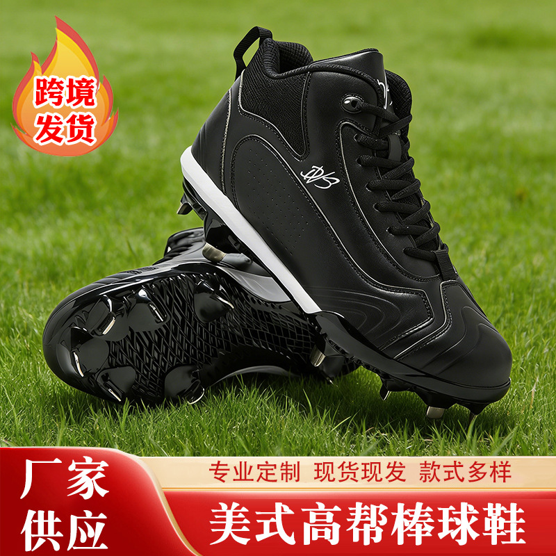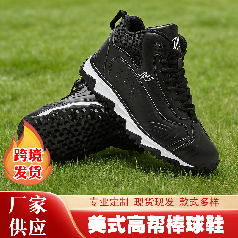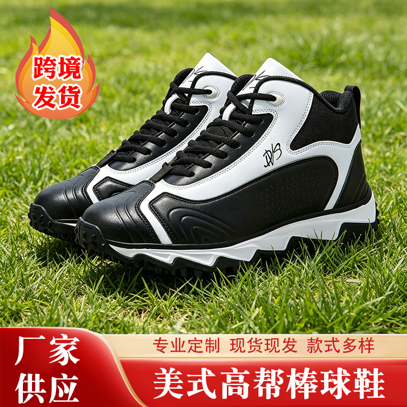 厂家跨境供应美式高帮棒球鞋垒球鞋草地碎钉鞋底缓震运动鞋批发