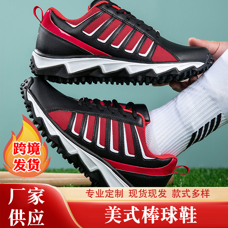 跨境现货美式棒球鞋垒球鞋硬胶钉鞋底男士训练比赛鞋工厂批发
