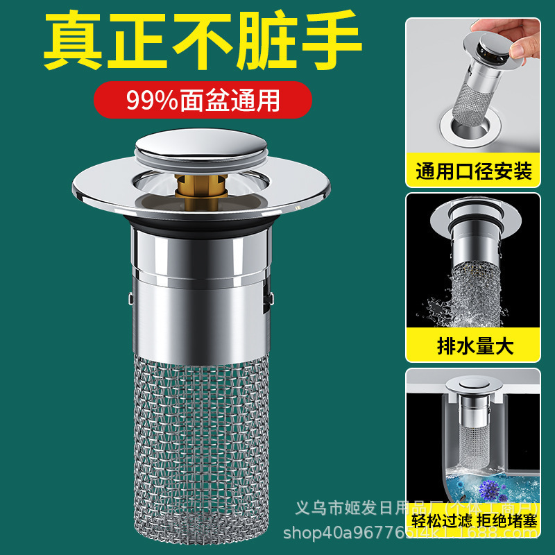 洗脸盆304 不锈钢铜芯弹跳芯洗脸盆通用铜芯下水器洗手池滤网防堵