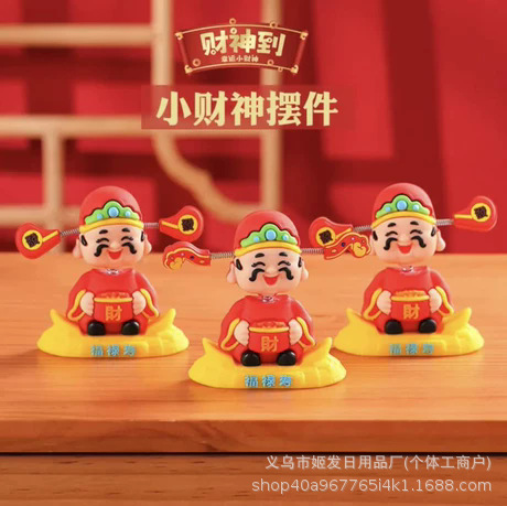财神小摆件创意国潮财神爷摇头公仔车办公室桌面装饰新年礼物财神