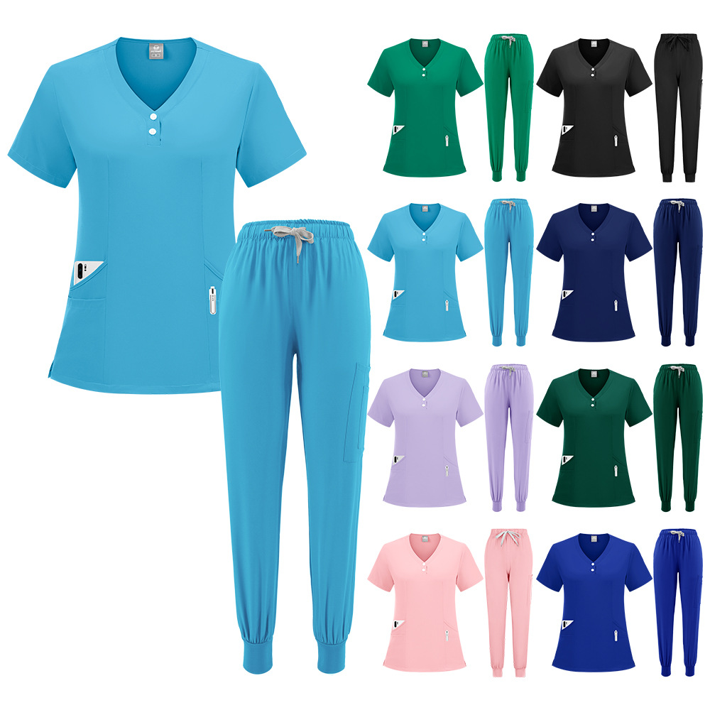 医院手术服批发V领弹力刷手服短袖洗手衣套装女宠物美容院护士服