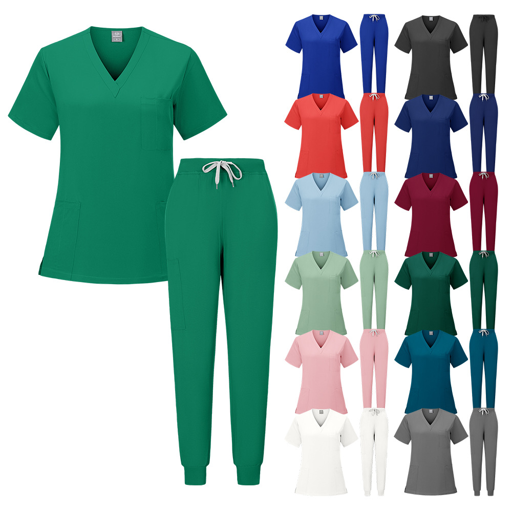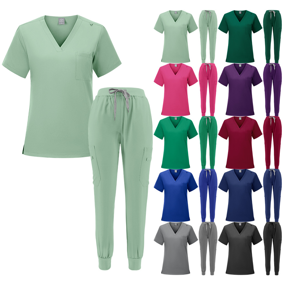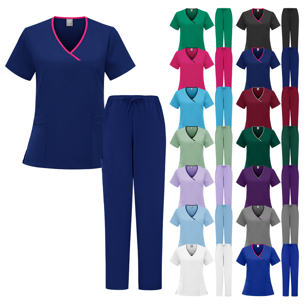 亚马逊欧美热销弹力医生护士工作制服洗手衣手术衣手术服V领套装