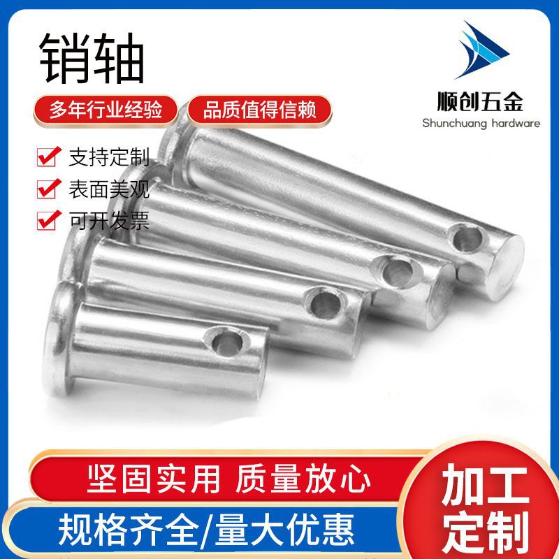 304不锈钢销轴 平圆头带孔销钉 GB882平头带孔定位销插销M8-M14